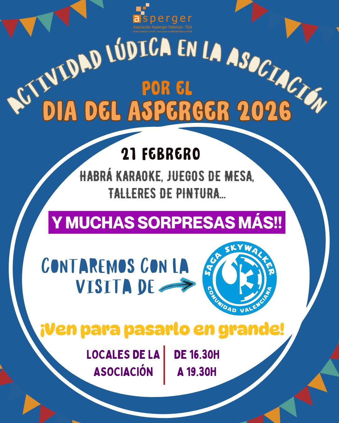 El próximo 21 de febrero celebraremos en la asociación una tarde muy especial con motivo del Día del Asperger 2026. Hemos preparado una actividad lúdica para disfrutar en comunidad, compartir y seguir construyendo un espacio inclusivo y acogedor para todas las personas.